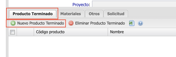 Si no desea ensamblar productos para un pedido específico, sino crear productos para almacenamiento, haga clic en “Nuevo Producto Terminado” dentro de la pestaña “Producto Terminado” para agregar el producto que se producirá en la OT Express: